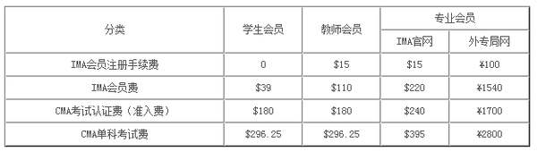 CMA考試認(rèn)證費(fèi)(準(zhǔn)入費(fèi)):學(xué)生會(huì)員$188、教師會(huì)員$188、專(zhuān)業(yè)會(huì)員$250。